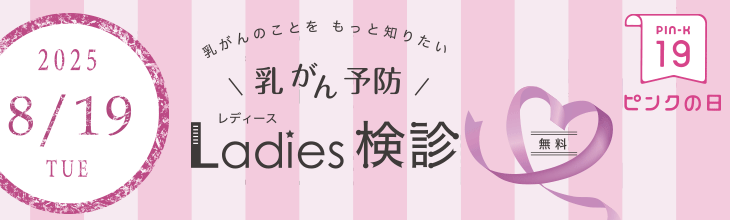 8/19(火)はピンクの日としまして、ココットさくら館では、「乳がん予防Ladies検診」を開催いたします。